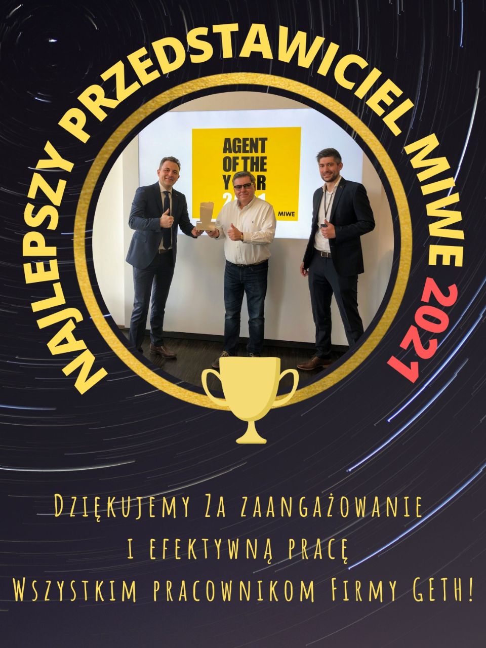 W lutym 2022 roku firma GETH otrzymała prestiżową nagrodę Lider Sprzedaży 2021 za wyjątkowe wyniki w zakresie instalacji urządzeń MIWE w Polsce. Nasze osiągnięcia wyraźnie wyprzedziły sprzedaż przedstawicielstw z innych krajów Europy.