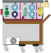 Model ten przeznaczony jest do czyszczenia blach o wymiarze 580x980mm i 600x1000mm posiadających 2 ranty. Blacha wkładana jest do urządzenia od przodu, wciągana jest przez stalowe walce i czyszczona jest za pomocą szczotek stalowej i z tworzywa sztucznego, następnie wypychana jest przez kolejne walce stalowe i doczyszczana jest przez szczotki z tworzywa sztucznego. Dzięki tym walcom, blacha jest każdorazowo prostowana oraz przy wyjściu z maszyny olejona.