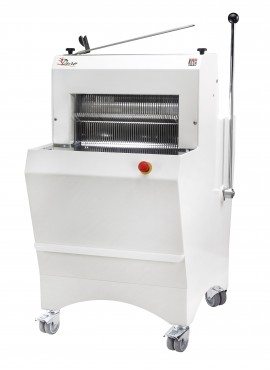 Krajalnica o tradycyjnej sprawdzonej konstrukcji. Posiada dźwignię, za pomocą której ustawia się ogranicznik dociskający chleb do noży w położenie, umożliwiające włożenie chleba do krajalnicy. Ogranicznik ten, za pomocą sprężyny, powraca w swoje pierwotne położenie, a chleb przechodząc przez noże jest krojony. Po pokrojeniu i zapakowaniu chleba czynność się powtarza.